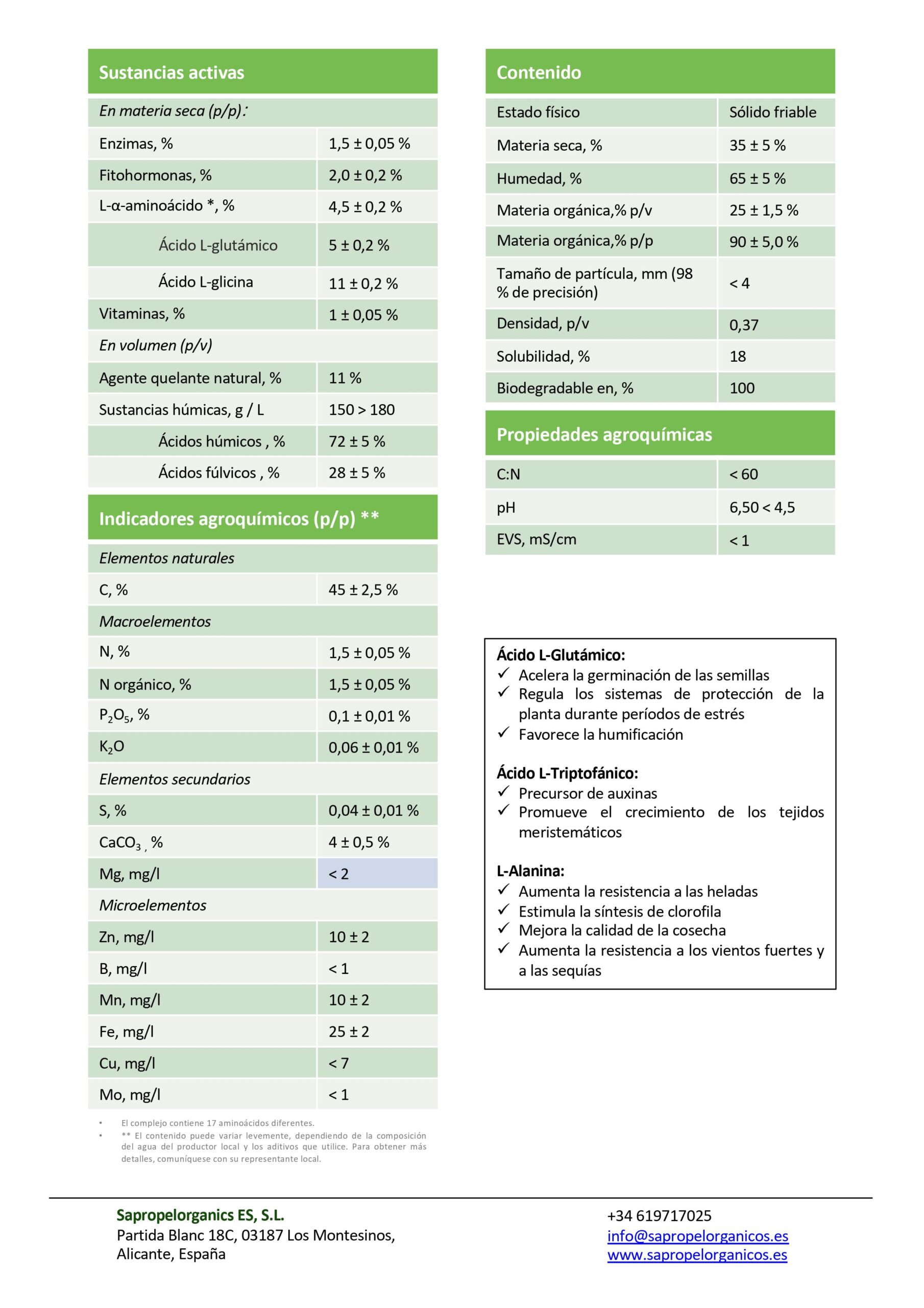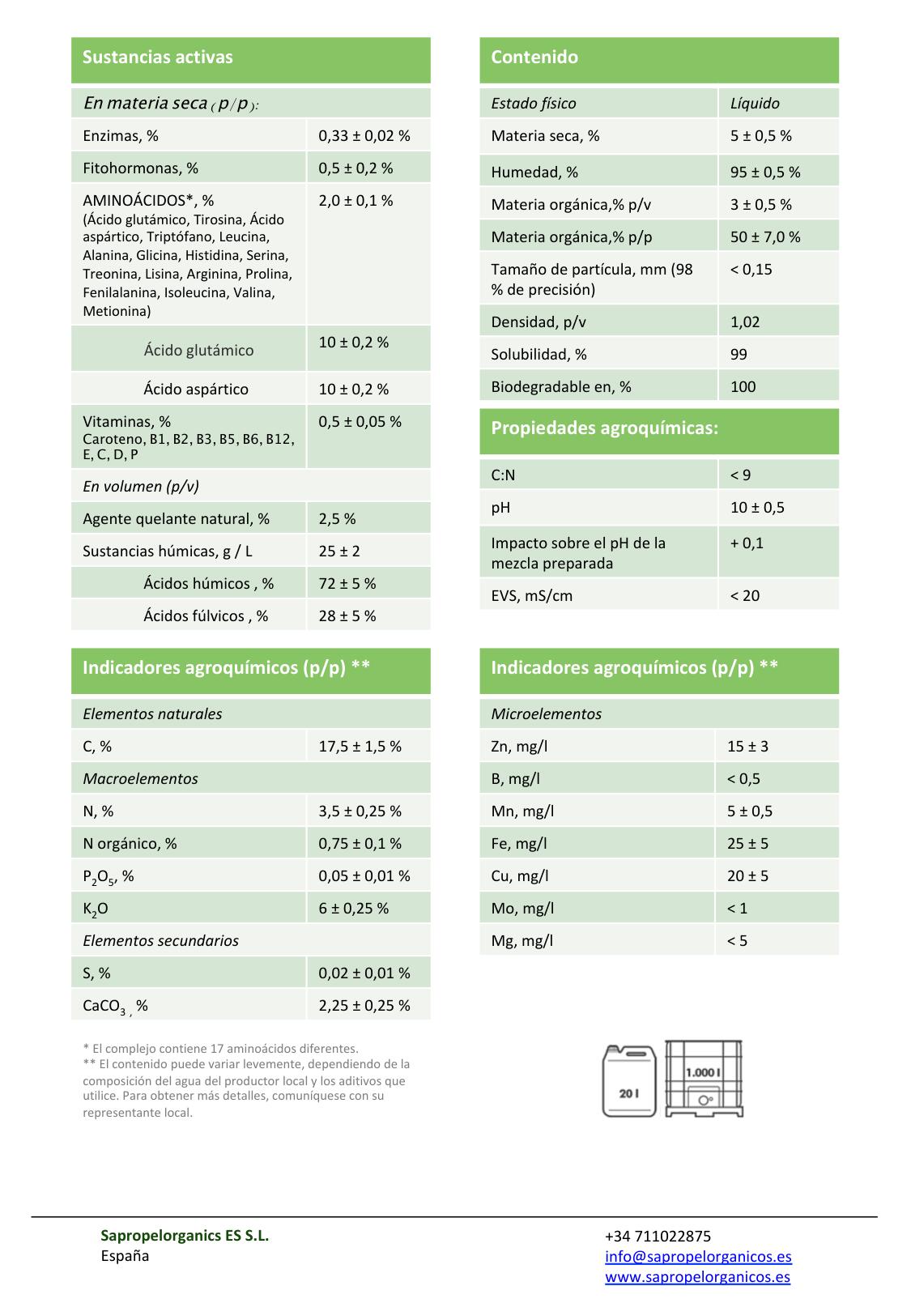 Ensayos realizadosHUMUSON COMPLEXGrow +